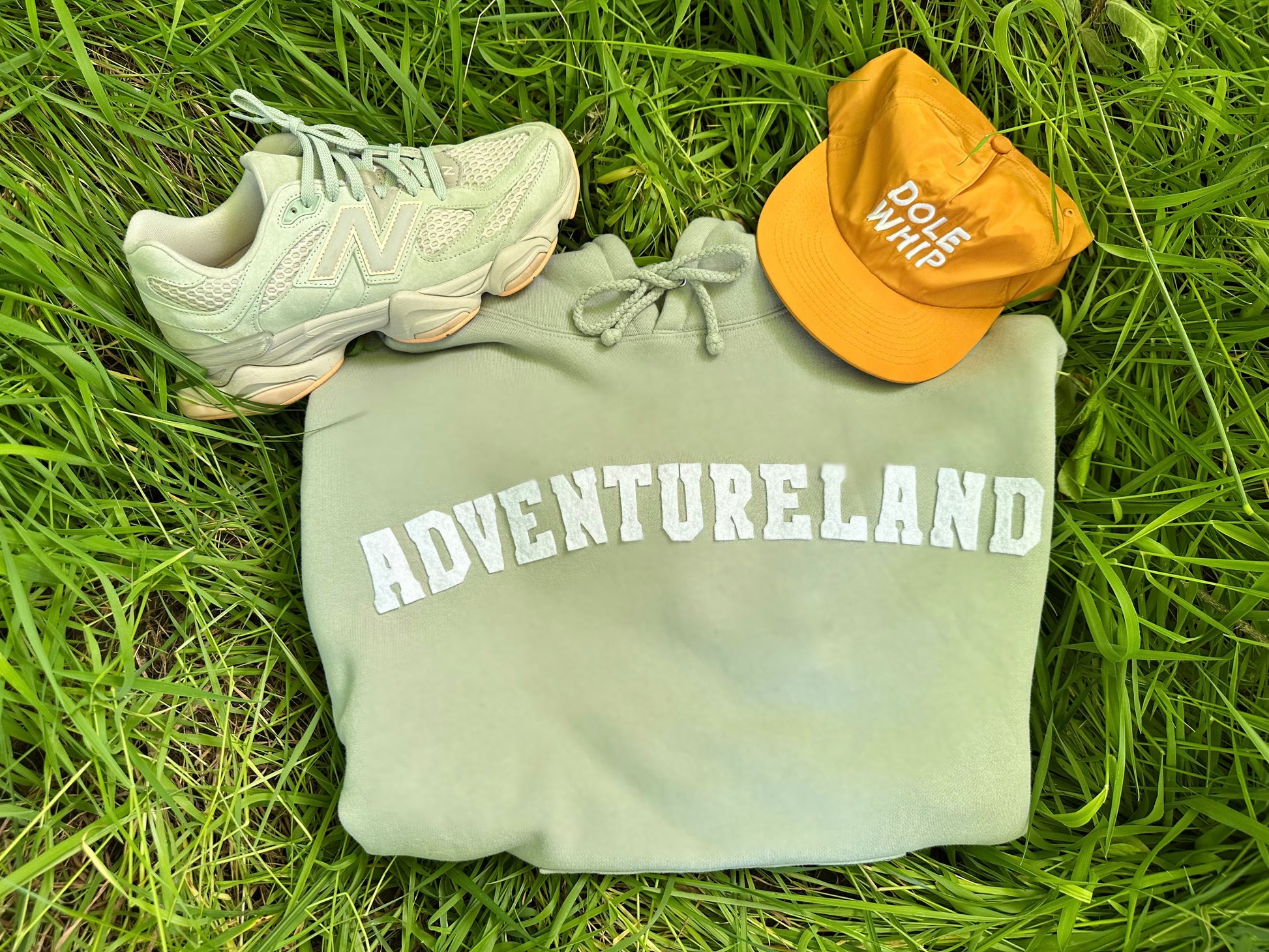 Our Essentials collection features simple light colors with accenting white felt lettering to give you a basic feel that you can rock in and outside of the parks!